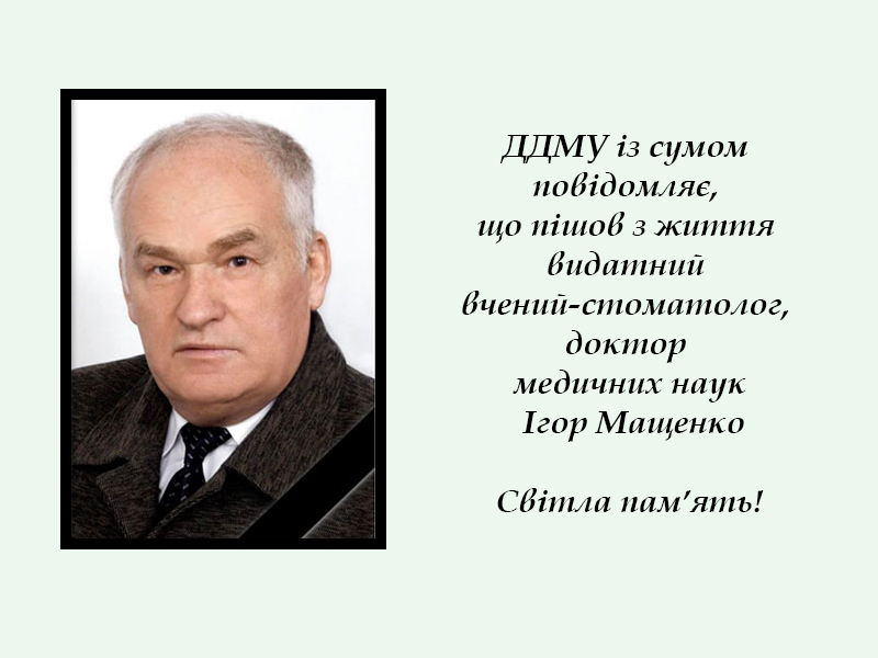 Професорсько-викладацький склад ДДМУ висловлює щирі співчуття сім'ї та рідним померлого. Життя Ігоря Мащенка - приклад справжньої відданості медицині та науці та невпинного бажання змінити світ на краще. Світла йому пам’ятіь!