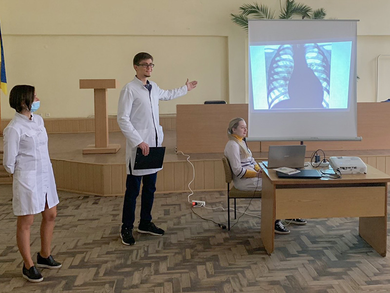 Доповідь студентів 3 десятка В’ячеслава Постового і Діани Петрової стосувалася стратегії діагностики ЛГ. А студенти 2 десятка Діана Коваленко і Нонна Ломейко підготували презентацію щодо лікування ЛГ, познайомили присутніх із сучасними медикаментозними препаратами та немедикаментозними методиками лікування.