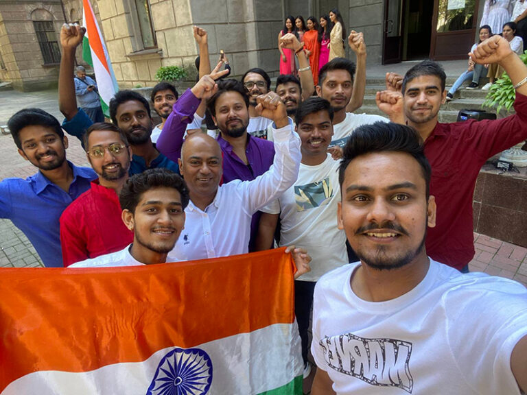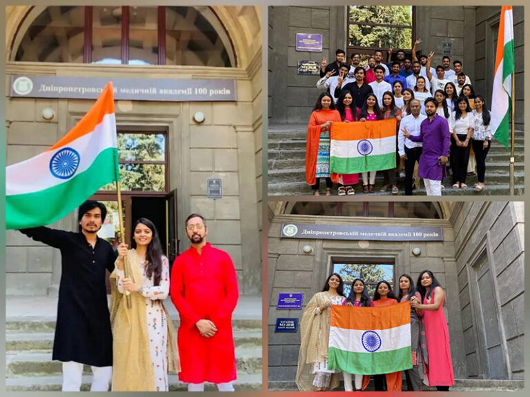 Наші студенти завжди демонструють зразки високого патріотизму, шанують свою культуру та мову. Студенти з Республіки Індія, що здобувають медичну освіту в ДДМУ і зараз знаходяться у Дніпрі, влаштували свято в рідному для них морфологічному корпусі університету. У День незалежності Індії під рідним прапором вони спілкувалися з рідними, вітали один одного, співали національних пісень, приймали вітання від українських друзів.