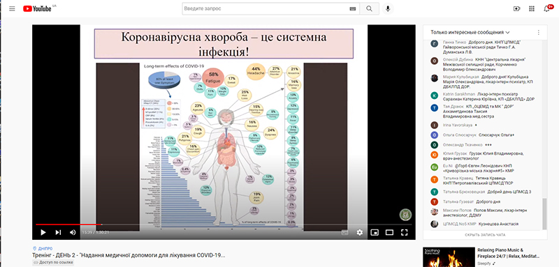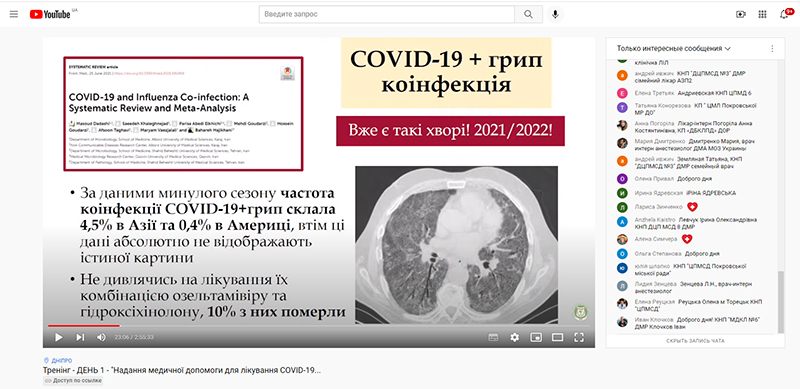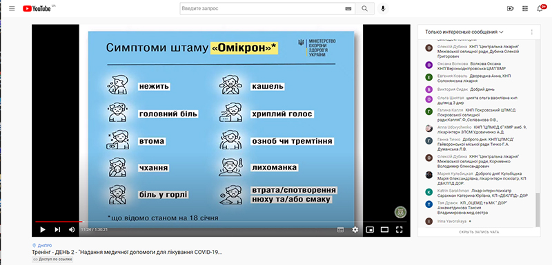 Онлайн-навчання в реальному часі в режимі «доповіді-питання-відповіді» пройшли понад 590 лікарів різних спеціальностей Дніпропетровської, Донецької та Кіровоградської областей. Понад 1000 користувачів переглянули тренінг у запису.