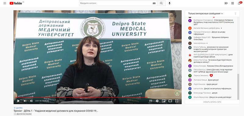 19-20 січня 2022 року Дніпровським державним медичним університетом за підтримки Департаменту охорони здоров’я Дніпропетровської обласної державної адміністрації, на виконання доручення Прем’єр-міністра України Дениса Шмигаля, протоколу РНБО України від 30 грудня 2021 стосовно пункту 8.1 «Про поширення варіанта Омікрон коронавірусу SARS-CoV-2 у світі та загрози для України», згідно з розпорядженням Міністерства охорони здоров’я України, було проведено дводенний онлайн-тренінг за участю провідних спеціалістів професорсько-викладацького складу університету з питань коронавірусної хвороби: «Надання медичної допомоги для лікування коронавірусної інфекції (COVID-19) та Стандартів медичної допомоги «Коронавірусна хвороба (COVID-19)».