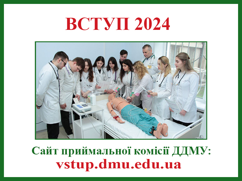 Вся інформація щодо вступу на сайті приймальної комісії ДДМУ: https://vstup.dmu.edu.ua/