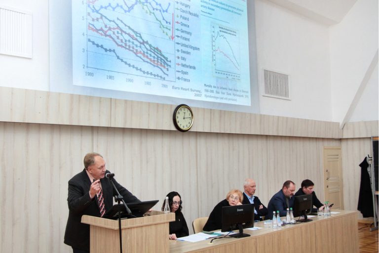 Свою доповідь професор О. В. Курята присвятив нашим вчителям, великій плеяді видатних вчених Дніпропетровської школи з внутрішньої медицини: академіку НАМН України, професору Г. В. Дзяку, професору І. І. Крижанівській, професору С. С. Короленко, професору В. П. Гейченко.