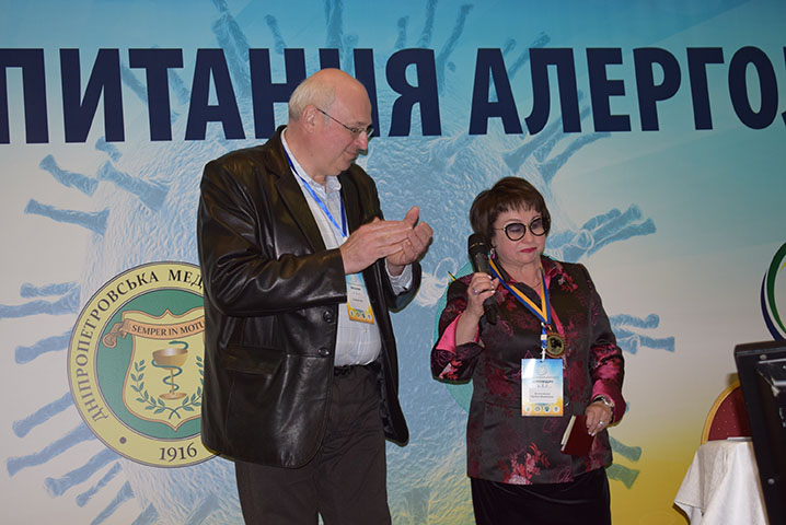 Президент Українського товариства фахівців з імунології, алергології та імунореабілітації (УТІАІ) професор І.П. Кайдашев вручив почесні медалі за вклад в розвиток клінічної імунології та алергології України. Одну з них отримала професор кафедри професійних хвороб та клінічної імунології ДЗ «ДМА» Є.М. Дитятковська.