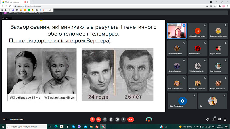 - «Теломери та теломеразний комплекс. Основні клінічні прояви генетичного збою» – Дар’я Захарова (2 курс).