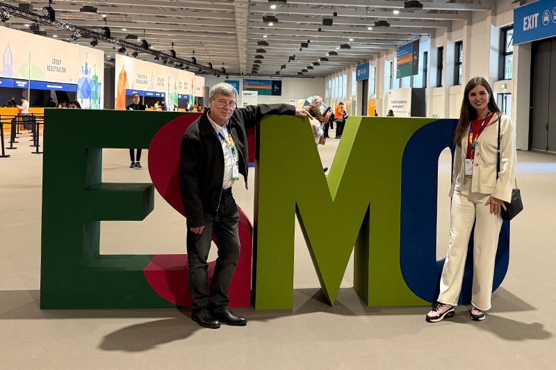17-21 жовтня в Берліні відбувся черговий конгрес ESMO 2025. Щорічний зʼїзд ESMO є найбільшою подією, що озвучує подальші вектори розвитку онкології, аналізує досягнуте за рік та створює майбутнє. Десятки тисяч лікарів Європи та світу їдуть на конгрес за новими знаннями, спілкуванням та переосмисленням наукових надбань. Цьогоріч серед них і команда українських онкологів, у складі якої фахівці кафедри онкології та медичної радіології ДДМУ у складі в. о. завідувача Віктора Завізіона та асистентки Анни Прохач.