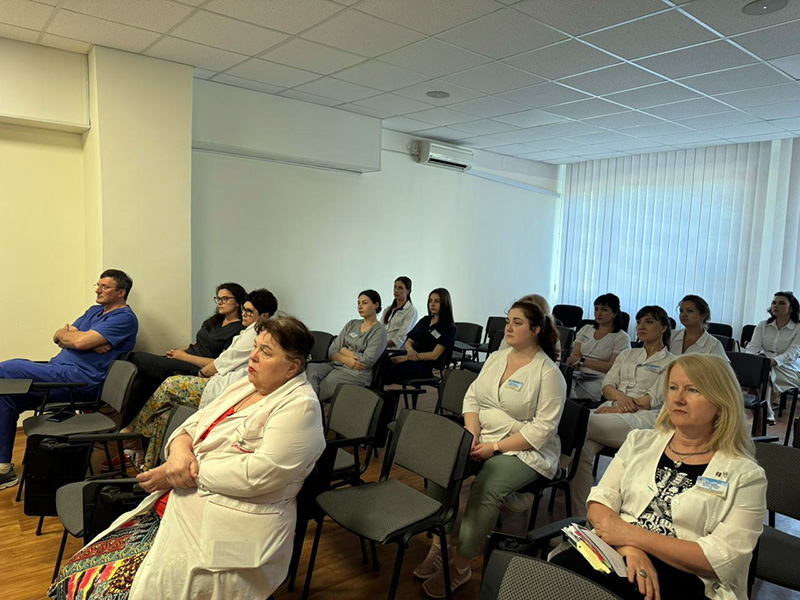 18 червня на базі Міської клінічної лікарні 4 відбулася лекція доцента кафедри внутрішньої медицини 2, фтизіатрії, професійних хвороб і клінічної імунології, канд. мед. наук Євгенії Фролової. Щодо тематики – йшлося про нові можливості в лікуванні хронічної хвороби нирок та цукрового діабету 2 типу в рамках оновлених клінічних рекомендації KDIGO 2024 з акцентом на нефро- та кардіопротекцію. Відновити порушення функції нирок складно, іноді неможливо, однак своєчасне призначення препаратів, які мають ренопротекторну дію, приводить до покращення якості життя і дарують додаткові роки, котрі втрачаються через хворобу.