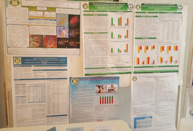Були представлені матеріали також 6 стендових доповідей молодих вчених: Крихтіна М.А., Бєлосудцева К.О. – наук. керівник Т.О. Перцева, каф. внутрішньої медицини 1; Мошенець К.І. – кафедра ендокринології; Білецький В.В., Надюк А.В., Косова Г.А., Киричко М.Г. – кафедра пропедевтики внутрішньої медицини; Надюк А.В., Косова Г.А. – кафедра пропедевтики внутрішньої медицини; Заяц В., Павлюченко Т. – кафедра пропедевтики внутрішньої медицини; Бабенко О.А. – кафедра внутрішньої медицини 1, та видавнича продукція академії.