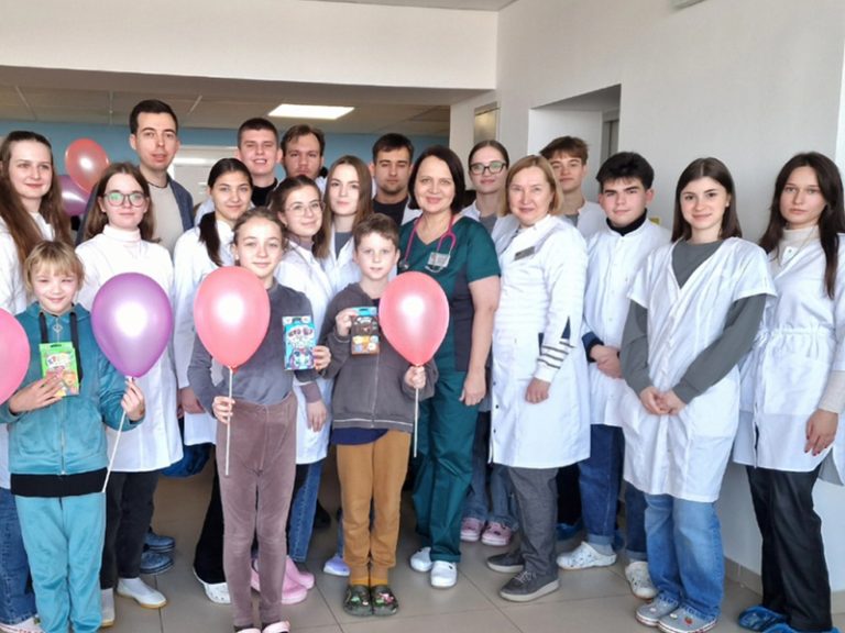Співробітники кафедри пропедевтики дитячих хвороб та педіатрії 2 ДДМУ разом зі студентами відзначили цю подію теплим візитом до маленьких пацієнтів на клінічній базі кафедри (міська багатопрофільна клінічна лікарня матері та дитини ім. проф. М. Ф. Руднєва). Команда підготувала привітання, створивши атмосферу підтримки та позитивних емоцій. Для студентів це не просто волонтерство — це важливий елемент професійного становлення, можливість навчитися бути поруч із дитиною у момент вразливості, зрозуміти її страхи, емоції та потреби.