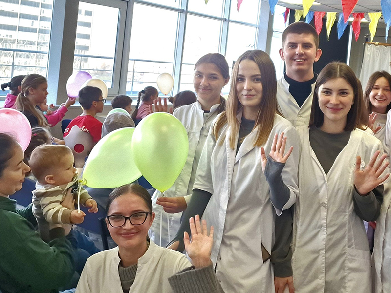 Співробітники кафедри пропедевтики дитячих хвороб та педіатрії 2 ДДМУ разом зі студентами відзначили цю подію теплим візитом до маленьких пацієнтів на клінічній базі кафедри (міська багатопрофільна клінічна лікарня матері та дитини ім. проф. М. Ф. Руднєва). Команда підготувала привітання, створивши атмосферу підтримки та позитивних емоцій. Для студентів це не просто волонтерство — це важливий елемент професійного становлення, можливість навчитися бути поруч із дитиною у момент вразливості, зрозуміти її страхи, емоції та потреби.