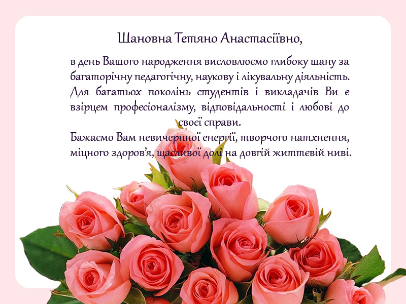 До дня народження професора Тетяни Анастасіївни Хомазюк