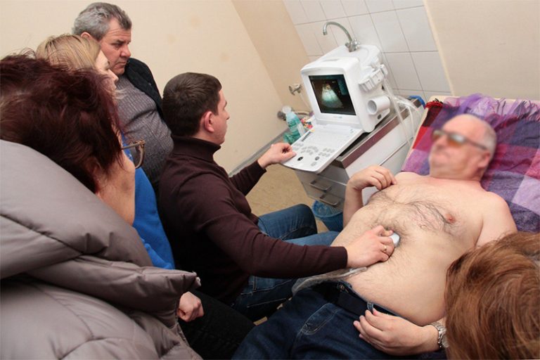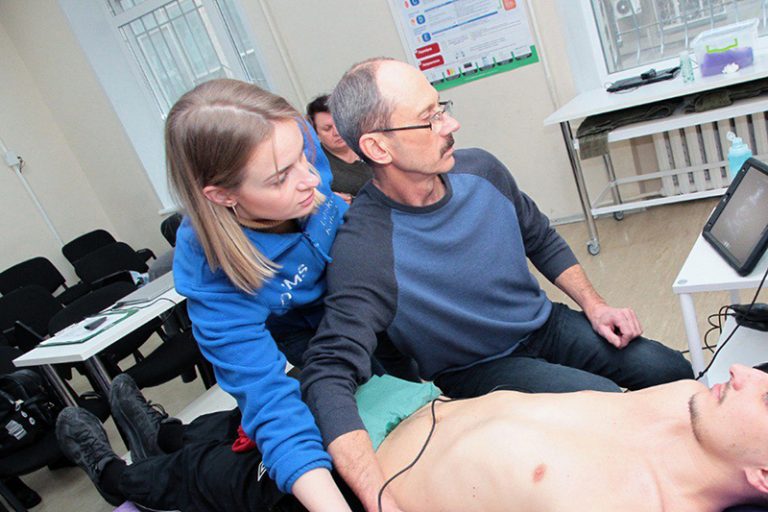 Відпрацьовування практичних навичок починається з налаштування УЗД апарату, опанування техніки тримання датчика й орієнтації за маркером. Навчання триває 4 дні. За цей час лікарі МНС відпрацьовують основи основи ультразвукового обстеження печінки, нирок, селезінки, сечового міхура, легень і серця на здорових добровольцях. Окрему увагу приділяють розбору клінічних завдань (приклади з бібліотеки), інтерпретують реальні УЗ-зображення легень пацієнтів з різними профілями BLUE, визначають ознаки кровотечі в черевній порожнині й тазі, а також оцінюють пацієнтів у критичному стані з недиференційованою гіпотензією.