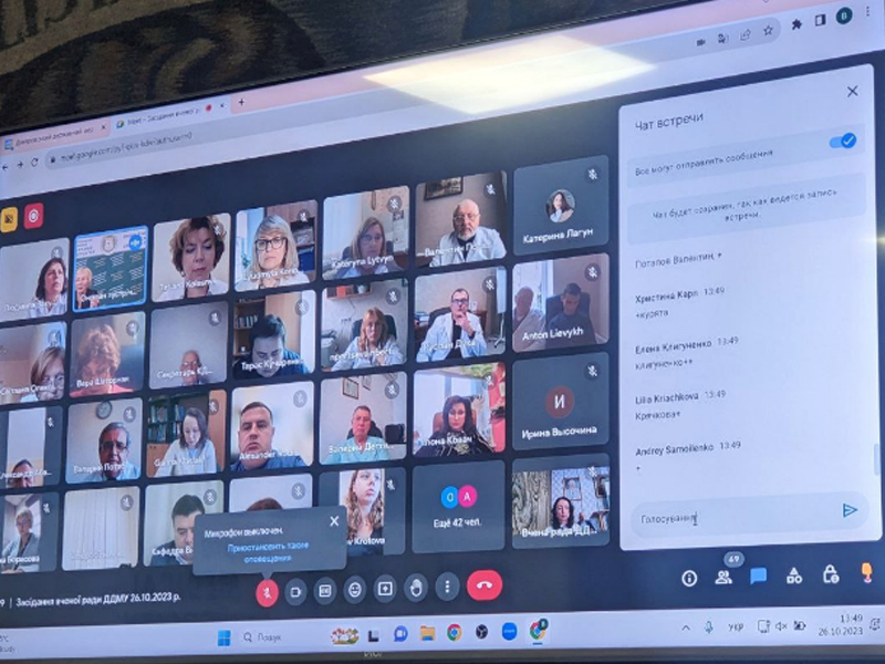 26 жовтня в режимі онлайн відбулося чергове засідання вченої ради ДДМУ під головуванням академіка НАМН України, професора Т. О. Перцевої.