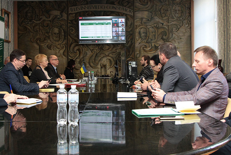 Доповідач проінформував про доходи й видатки університету у 2022 році, а також про зміни у фінансовій діяльності закладу, обумовлені введенням воєнного стану в країні. Зазначалося про скорочення доходів університету, що пов’язано у тому числі зі зменшенням контингенту іноземних студентів на 43 %.