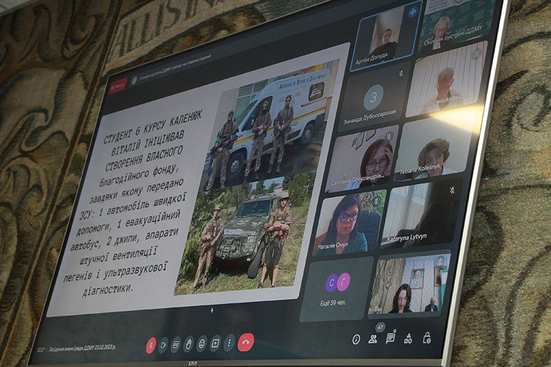 23 лютого 2023 року в режимі онлайн відбулося чергове засідання вченої ради ДДМУ під головуванням академіка НАМН України, професора Т. О. Перцевої. На початку засідання голова вченої ради вручила дипломи доцентів викладачам О. С. Калашніковій (кафедра внутрішньої медицини 3) та К. І. Мошенець (кафедра ендокринології).