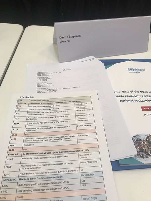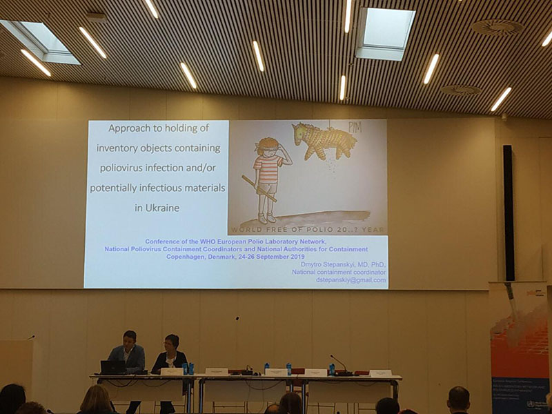 Наприкінці вересня в Копенгагені (Данія) відбулась конференція Європейської регіональної мережі лабораторій ВООЗ, на якій національний координатор з контейнменту поліовірусів, завідувач кафедри мікробіології, вірусології, імунології та епідеміології ДМА, д.мед.н. Д.О. Степанський поділився досвідом України щодо підходу до проведення інвентаризації об’єктів, що містять поліовірусні інфекційні та/або потенційно інфіковані матеріали.