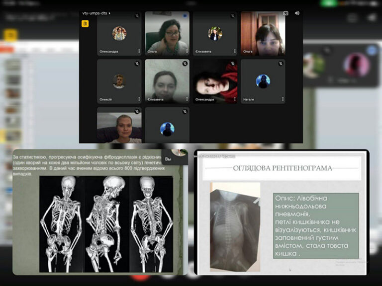 Наступні дві доповіді були присвячені рідкісній генетичної альтерації з різною морфологічною локалізацією, але однаковим ефектом – розвитком кам’яної людини. Студентка 4 курсу Ольга Пасько представила доповідь на тему: «Прогресуюча осифікуюча фібродисплазія». Уляна Клочко на Вероніка Лещук (4 курс) разом з науковим керівником професором С. І. Ільченко виступили на тему: «Stone boy syndrome або синдром камʼяного хлопчика».
