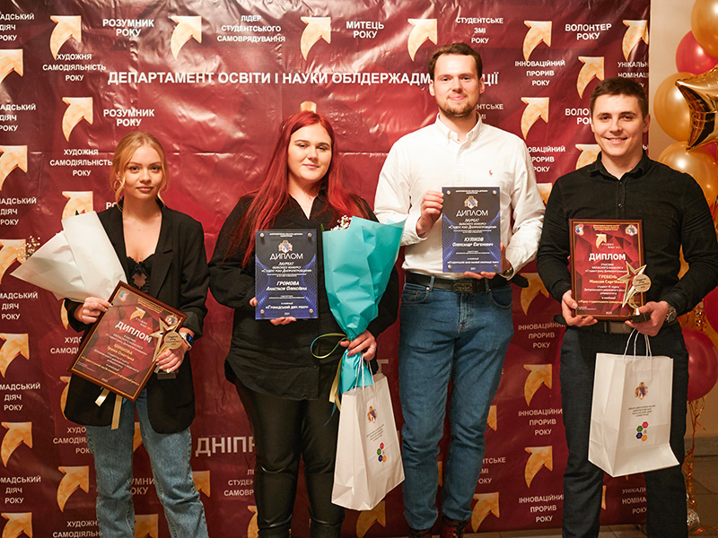 Студенти ДДМУ отримали 7 нагород. 5 студентів, а саме: Ірина Шишова, Діана Паньшина, Максим Гребень, Михайло Горохов та Олена Бондаренко потрапили до п’ятірки найкращих у своїх номінаціях. А два здобувачі освіти: Олександр Куліков та Анастасія Громова, увійшли до трійки найкращих та стали лауреатами конкурсу.
