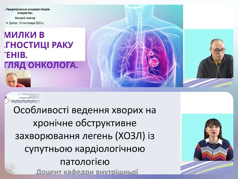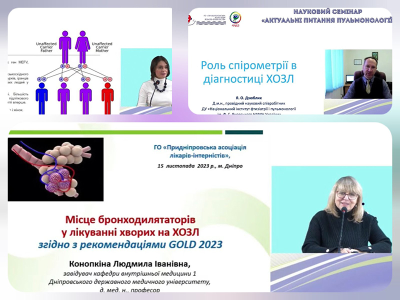 Були представлені 12 доповідей. Відкрила семінар голова ГО «Придніпровська асоціація лікарів-інтерністів», академік НАМН України, професор Т. О. Перцева, яка привітала учасників та виступила з доповіддю на тему «Сучасний погляд на лікування ХОЗЛ». Також виступили доктор мед. наук Я. О. Дзюблик (провідний науковий співробітник ДУ «Національний інститут фтизіатрії і пульмонології ім. Ф. Г. Яновського НАМН України»), професор Л. І. Конопкіна (завідувач кафедри внутрішньої медицини 1 ДДМУ), професор В. В. Родіонова (кафедра внутрішньої медицини 2, фтизіатрії, професійних хвороб і клінічної імунології ДДМУ), доктор мед. наук О. А. Суховерша (доцент, онкохірург вищої категорії, співробітник торакального відділення КНП «МКЛ №4» ДМР), доценти кафедри внутрішньої медицини 1 ДДМУ О. В. Мироненко, Т. В. Кірєєва, О. Г. Черкасова, Н. А. Саніна.