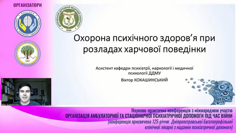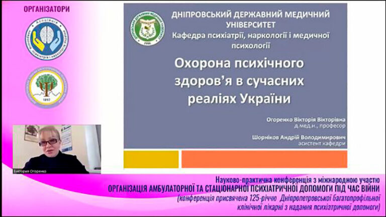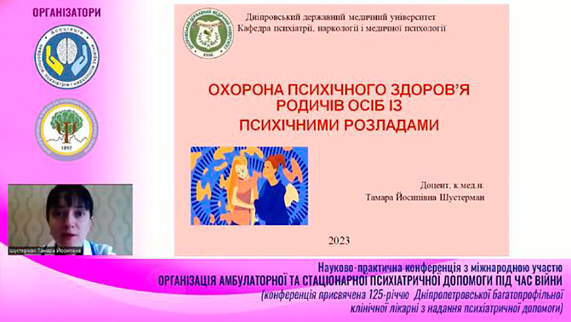 26 – 27 січня 2023 року співробітники кафедри психіатрії, наркології і медичної психології ДДМУ взяли участь у науково-практичній конференції з міжнародною участю «Організація амбулаторної та стаціонарної психіатричної допомоги під час війни», присвяченої 125-річчю Дніпропетровської багатопрофільної клінічної лікарні з надання психіатричної допомоги.