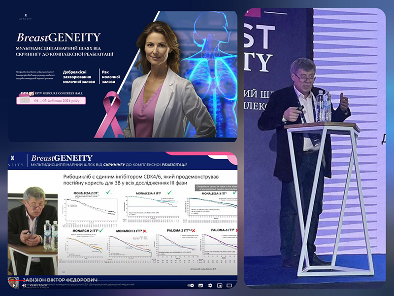 Дніпровський державний медичний університет представили фахівці кафедри онкології і медичної радіології кандидат медичних наук, доцент Віктор Завізіон та асистентка кафедри, кандидат медичних наук Анна Прохач. Вони представили дві доповіді з лікування раку молочної залози та доповідь про найчастішу пухлинну патологію грудей – фіброаденому.