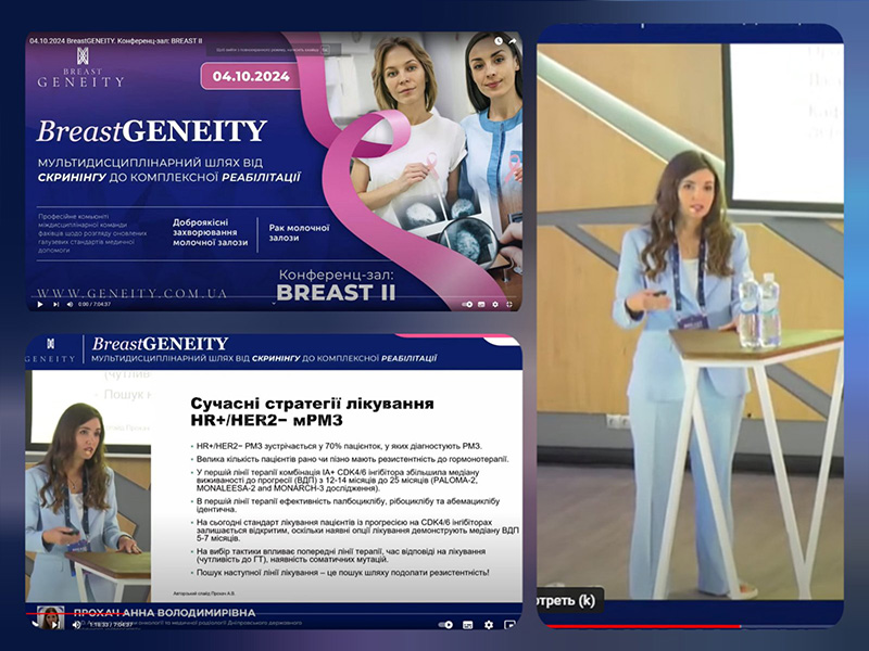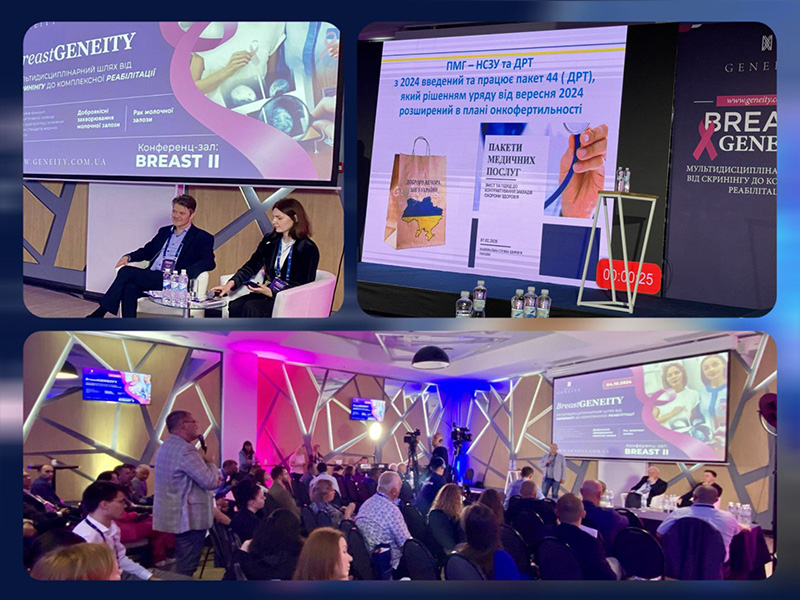 Жовтень – місяць обізнаності про рак молочної залози (РМЗ). 4-5 жовтня 2024 року в Києві в змішаному форматі відбулась науково-практична конференція «BreastGENEITY: мультидисциплінарний шлях від скринінгу до комплексної реабілітації», присвячена оновленим галузевим стандартам медичної допомоги для пацієнтів із доброякісними та злоякісними патологіями молочної залози. Організатори: новітня науково-медична платформа GENEITY за підтримки Національного інституту раку спільно з Асоціацією мамологів України та HealthHub, Інституту педіатрії, акушерства і гінекології НАМН України, Асоціації гінекологів-ендокринологів України.