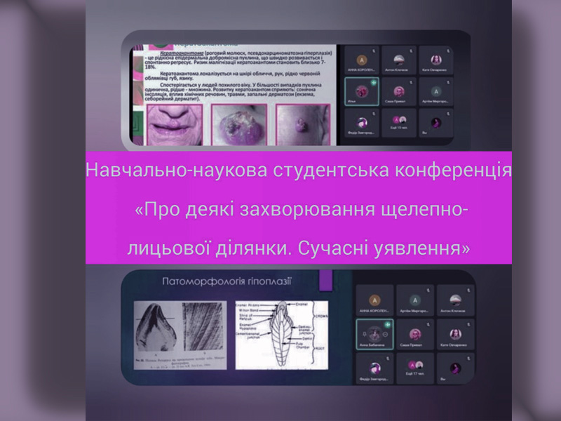 18 листопада 2022 року відбулося засідання СНТ кафедри патологічної анатомії, судової медицини та патофізіології спільно з кафедрами терапевтичної стоматології та хірургічної стоматології, імплантології та пародонтології в онлайн-форматі у вигляді навчально-наукової студентської конференції «Про деякі захворювання щелепно-лицьової ділянки. Сучасні уявлення».