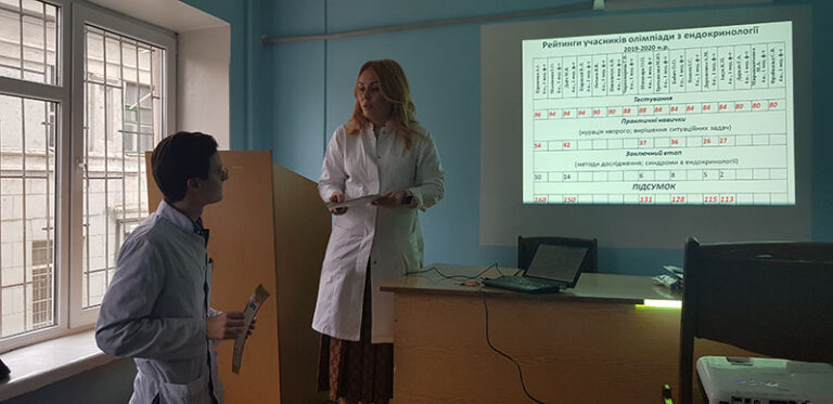 2 березня 2020 р. на базі кафедри ендокринології ДЗ «ДМА» відбувся етап оцінки практичних навичок студентів (курація хворого та письмове вирішення ситуаційних задач). Фіналісти також мали змогу довести свої знання в швидкий оцінці результатів додаткових методів дослідження та діагностиці симптомів та синдромів в ендокринології.