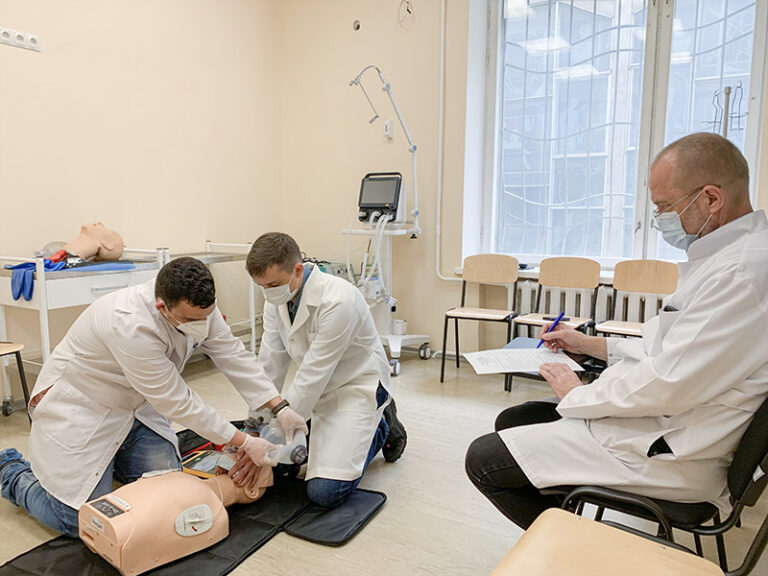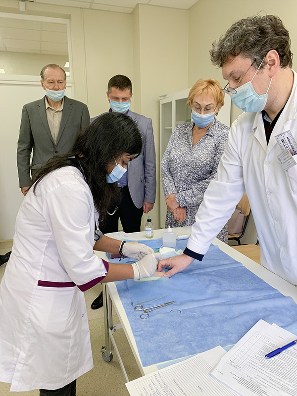 Наступним фінальним та вирішальним для випускників став клінічний практично-орієнтований іспит, який вперше проходив на базі новоствореного навчально-тренінгового центру симуляційної медицини. Проведенню іспиту передувала значна організаційна робота. За безпосередньою участю ректора університету проф. Перцевої Т.О., першого проректора проф. Шпоньки І.С., адміністрації навчально-тренінгового центру була розроблена нова процедура проведення цього іспиту, яка враховувала особисто для кожного випускника індивідуальний маршрутний лист з персональною логістикою та таймінгом руху по території центру та безумовним дотриманням протиепідемічних заходів з приводу COVID-19.