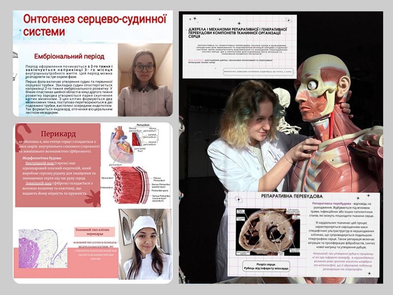 Міцкевич Милана виступила з доповіддю: «Перикард. Головний тип клітин. Походження. Функції. Значення». Фундаментальні дослідження морфології перикарда необхідні для розкриття складності його структури та взаємозв’язків із функціями й патологіями та є важливим етапом у вдосконаленні медичної практики, збереженні здоров’я серця та судин.