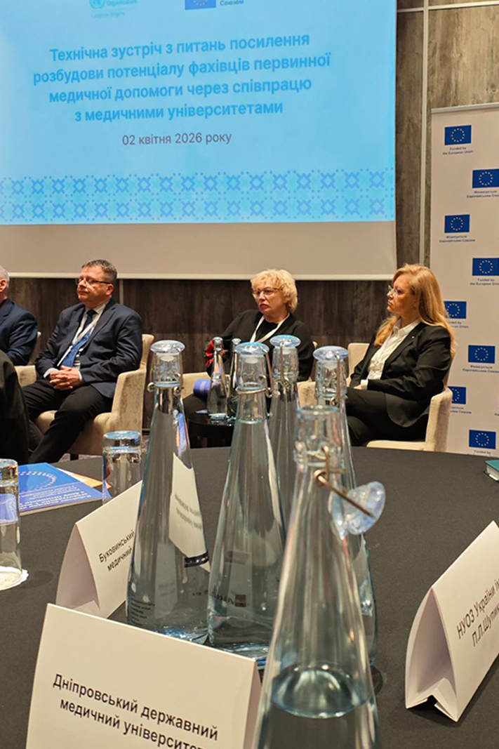 2 квітня 2026 року в місті Київ фахівці Бюро ВООЗ в Україні провели зустріч, присвячену розбудові потенціалу фахівців первинної медичної допомоги (ПМД) через співпрацю з медичними університетами. Захід відбувся за фінансової підтримки Європейського Союзу та об’єднав представників Міністерства охорони здоров’я, Центру якості освіти МОЗ України, а також 15 медичних університетів з усієї України, серед яких і ДДМУ.