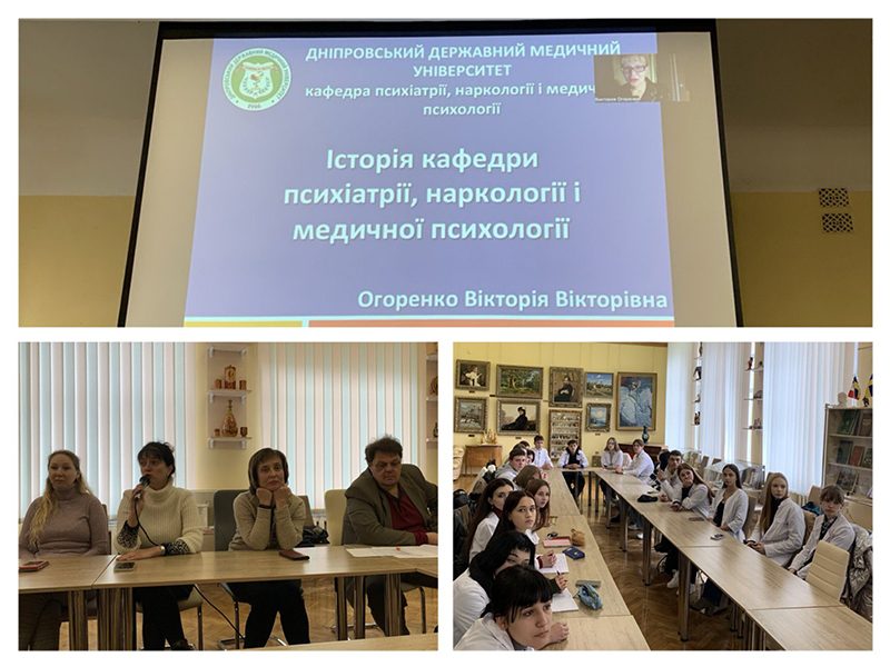 На початку заходу виступила завідувачка кафедри психіатрії, наркології і медичної психології, професорка Вікторія Огоренко, яка представила доповідь на тему: «Історія кафедри психіатрії, наркології і медичної психології». Вона розповіла про надбання та здобутки кафедри, видатних науковців і основні етапи розвитку, представила фахівців кафедри на сучасному етапі та окреслила подальші перспективи роботи.