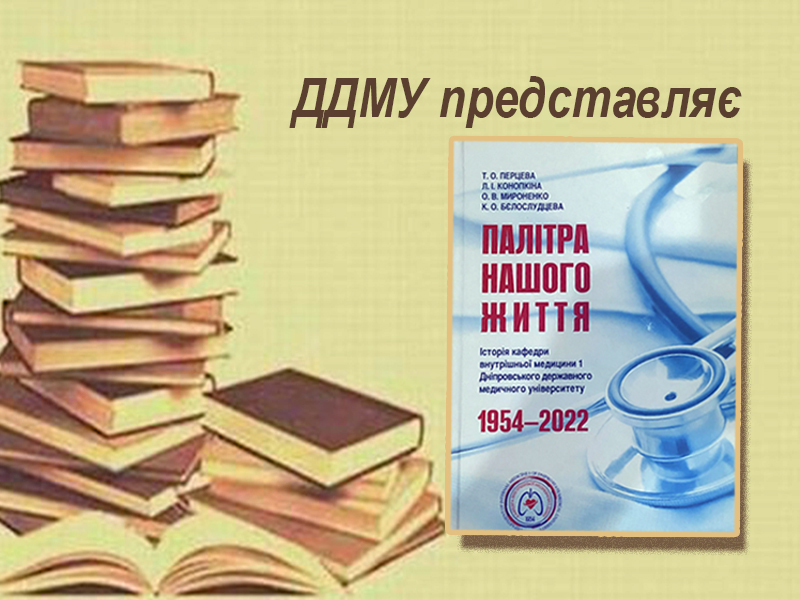 ДДМУ представляє видання «Палітра нашого життя», присвячене історії кафедри внутрішньої медицини 1 нашого університету від початку її створення в 1954 році до червня 2022 року, яке побачило світ минулого року. Автори: Т.О. Перцева, Л.І. Конопкіна, О.В. Мироненко, К.О. Бєлослудцева.