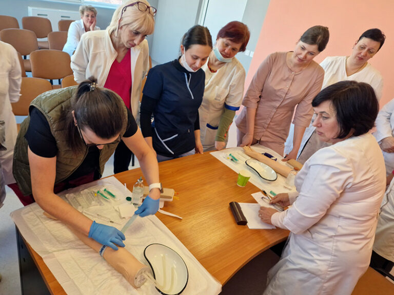 Основними питаннями тренінгу були виконання внутрішньовенних ін’єкцій, катетеризація периферичних вен та забір крові за допомогою вакутайнеру. Захід почався з теоретичної частини – відеодемонстрації техніки виконання маніпуляцій та розбору етапів алгоритму дій медичної сестри. Особливо цікавою для медичних працівників була практична частина майстер-класу, яка дозволила відпрацювати ці маніпуляції на медичних муляжах. Медичні сестри мали можливість опанувати техніку та підвищити свою кваліфікацію в виконанні необхідних практичних навичок.