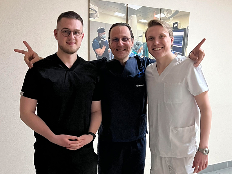 У матеріалі використані фото Центру лікування аритмій КЛ «Феофанія». На 1 фото -студент 6 курсу ДДМУ Іван Башмаков під час стажування разом із завідувачем Центру лікування аритмій, лікарем-аритмологом, лікарем-кардіохірургом вищої категорії, кандидатом медичних наук Олексієм Парацієм та одним із провідних фахівців Центру, лікарем-кардіологом, експертом Національного агентства з забезпечення якості вищої освіти Михайлом Подлужним.