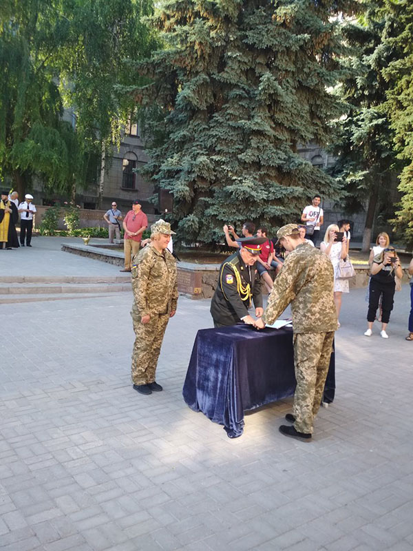 Ритуал складання Військової присяги завершено урочистим маршем у супроводі військового оркестру 194 понтонно-мостового загону під керівництвом диригента – підполковника Б.В. Задорожного, колектив якого на високому рівні представляє Україну на багатьох фестивалях військової музики за кордоном: Німеччині, Бельгії, Франції, Нідерландах.