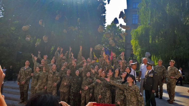 До привітань долучилась завідувач кафедри медицини катастроф та військової медицини, професор Олена Юріївна Сорокіна: “Від імені усіх офіцерів кафедри я дякую вам за сумлінну працю, бажання навчатися та пізнавати нове. Ви молоді, амбітні. Я бажаю Вам міцного здоров’я, незламного духу і великих успіхів в ім’я зміцнення обороноздатності України. Служіть гідно українському народові та Батьківщині!”