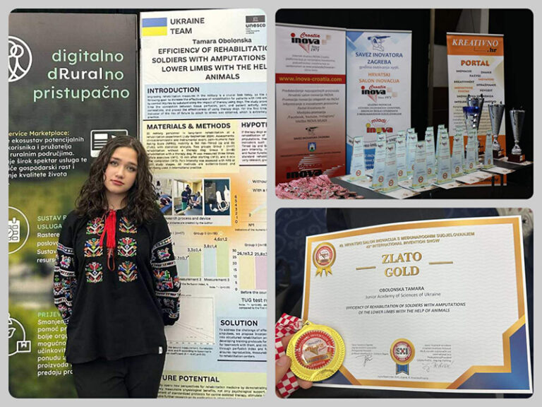 Дніпропетровщину на цьому престижному міжнародному заході представила першокурсниця ДДМУ Тамара Оболонська, отримавши «золото» за проєкт «Ефективність реабілітації військових з ампутаціями нижніх кінцівок за допомоги тварин».