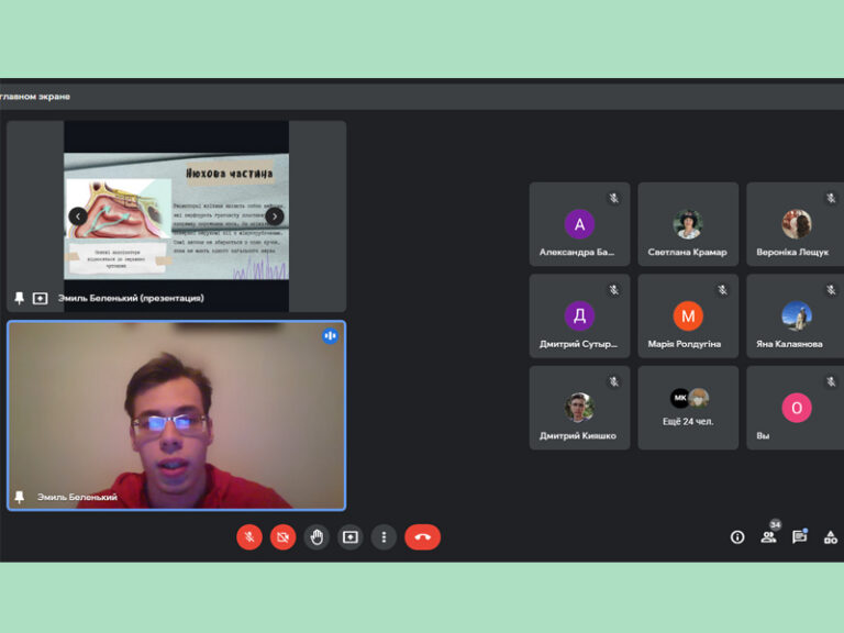 Доповідь студентки Карагодіної Дарії містила актуальну інформацію щодо інфекційних запальних хвороб вуха, травматичних ушкоджень, грибкових уражень або отомікозів та патології незапального характеру. Також були розглянуті патогенез та загальні принципи лікування євстахеїту, мастоїдиту, хвороби Меньєра, невриту слухового нерва, отиту та отосклерозу.