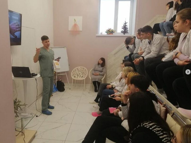 Першу доповідь на тему: :«Екзема: етиопатогенетичні аспекти: епідеміологія, класифікація, клініка та діагностика» підготувала лікар-інтерн Марина Панченко. Професійно, як майбутній фахівець, вона представила результати наукового пошуку, детально й зрозуміло ознайомила присутніх з особливостями клінічного перебігу екземи та її діагностикою. Також доповідачка наголосила на факторах ризику (тригерах), що впливають на тяжкість перебігу екземи в пацієнтів різних вікових категорій.