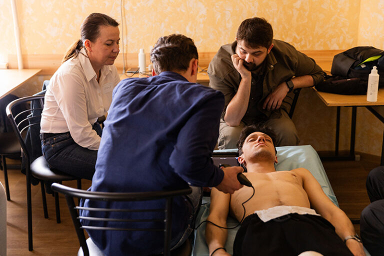 Протягом трьох днів лікарі з Дніпра, Харкова та Запоріжжя, які раніше мали досвід невідкладної УЗД-діагностики, опановували навички викладання її основ.