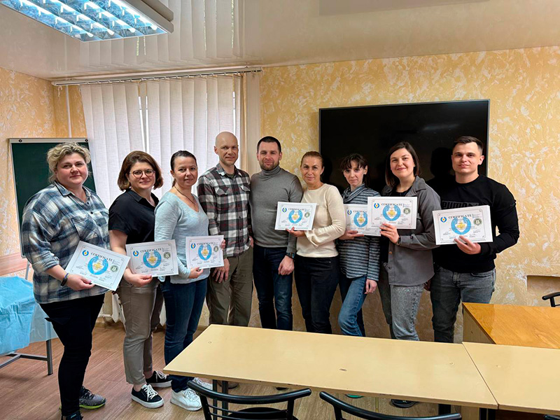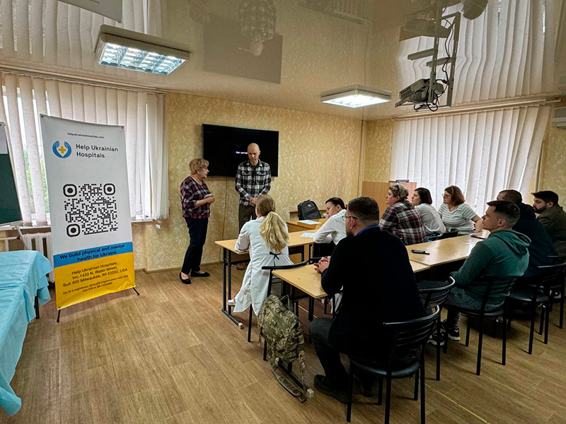 18-20 квітня 2024 р. кафедрою анестезіології, інтенсивної терапії та МНС ФПО ДДМУ (завідувач – доктор медичних наук, професор Ольга Кравець) та благодійним фондом Help Ukrainian Hospitals (президент – Владислав Дєєв, лікар-анестезіолог, університет Вісконсін-Медісон) за сприяння Української асоціації анестезіології та інтенсивної терапії (президент – доктор медичних наук, професор Олена Клигуненко) проведений тренінг для інструкторів «Ukranian-American POCUS Instructor Course».