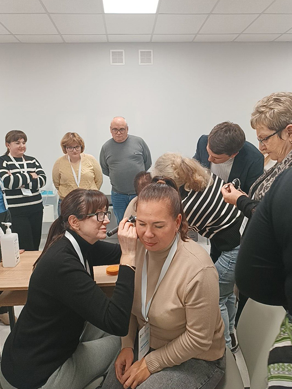 Програма навчання сімейних лікарів, розроблена відповідно до рекомендацій міжнародних експертів ВООЗ, включала забезпечення відпрацювання практичних навичок з використання чек-листів за покроковими алгоритмами дій з використанням стандартизованого нормативного матеріально-технічного оснащення надавачів ПМСД – візометрія, офтальмоскопія, отоскопія, СЛР, дефібриляція АЗД, подоскопія, вимірювання АТ, глюкометрія, використання камертонів та неврологічного молоточка з дотриманням вимог інфекційного контролю.