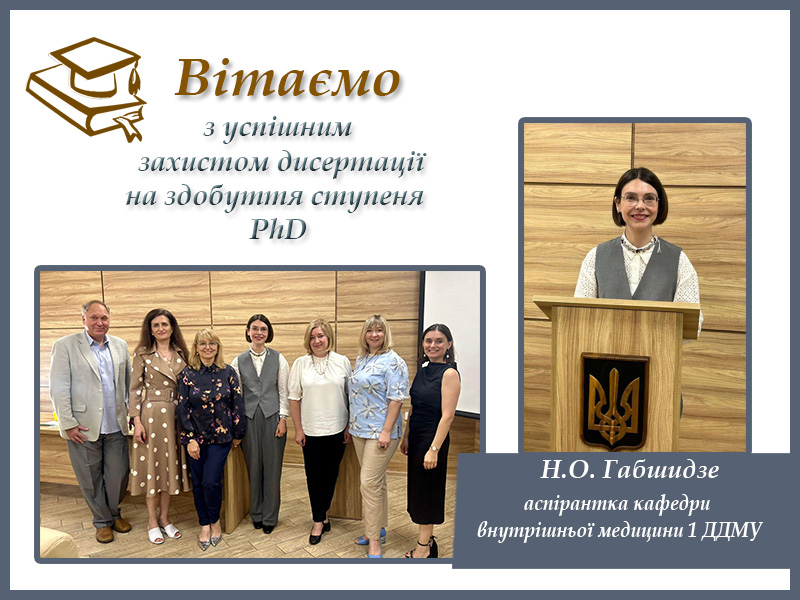 На підставі захисту дисертації спеціалізована вчена рада під головуванням професорки Катерини Юріївни Литвин ухвалила присудити Наталії Олександрівні Габшидзе ступінь доктора філософії. Спеціальність «Медицина», галузь знань «Охорона здоров’я».