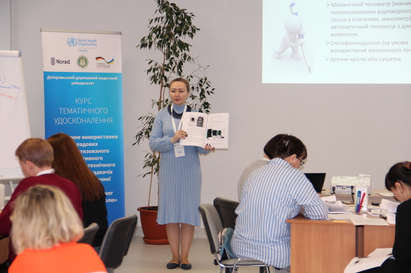 Навчання проходило за програмою тематичного удосконалення «Практичне використання складових стандартизованого нормативного матеріально-технічного оснащення надавачів первинної медичної допомоги із забезпеченням вимог інфекційного контролю» на кафедрі сімейної медицини, пропедевтики внутрішньої медицини та лабораторної діагностики ДДМУ (завідувачка – професорка І.Л. Височина).