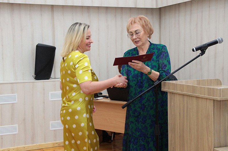 Академік НАМН України Т.О. Перцева вручила атестати професорів та доцентів співробітникам кафедр і привітала їх із новим статусом у професійному житті. Атестати професорів отримали Кравець Ольга Вікторівна, професор кафедри анестезіології, інтенсивної терапії та медицини невідкладних станів, Литвин Катерина Юріївна, професор кафедри інфекційних хвороб та Магрламова Камілла Газанфарівна, професор кафедри мовної підготовки. Атестати доцентів отримали Зозуля Оксана Олексіївна, доцент кафедри нервових хвороб та нейрохірургії, Кий-Кокарєва Вікторія Григорівна, доцент кафедри соціальної медицини, громадського здоров’я та управління охороною здоров’я, Ламза Нелля Валеріївна, доцент кафедри оториноларингології, Маркова Олена Яківна, доцент кафедри терапії, кардіології та сімейної медицини та Нетроніна Ольга Володимирівна, доцент кафедри біохімії та медичної хімії.