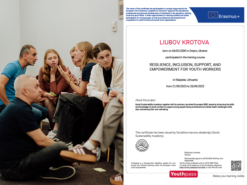 21–26 вересня 2025 року у місті Клайпеда (Литва) відбувся міжнародний навчальний тренінговий курс Erasmus+ «RISE – Resilience, Inclusion, Support & Empowerment for Youth Workers», що фінансується Європейським Союзом, який об’єднав 31 фахівця з Литви, Естонії, Польщі, України, Угорщини та Норвегії, створивши простір для обміну досвідом, розвитку навичок психологічної підтримки та підвищення стійкості молодіжних лідерів.
