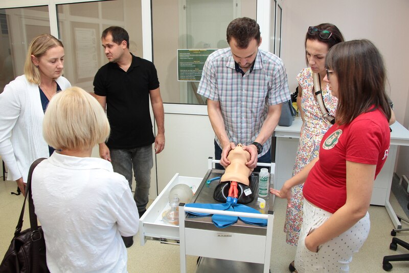 Тематика першого дня була спрямована на вивчення та відпрацювання навичок огляду критичного пацієнта за алгоритмом ABCDE, практичних навичок «Забезпечення прохідності дихальних шляхів: мануальні навички, надгортанні пристрої, накладання шийного комірця, методика проведення штучної вентиляції леденів мішком Амбу» та «Зупинка зовнішньої масивної кровотечі».