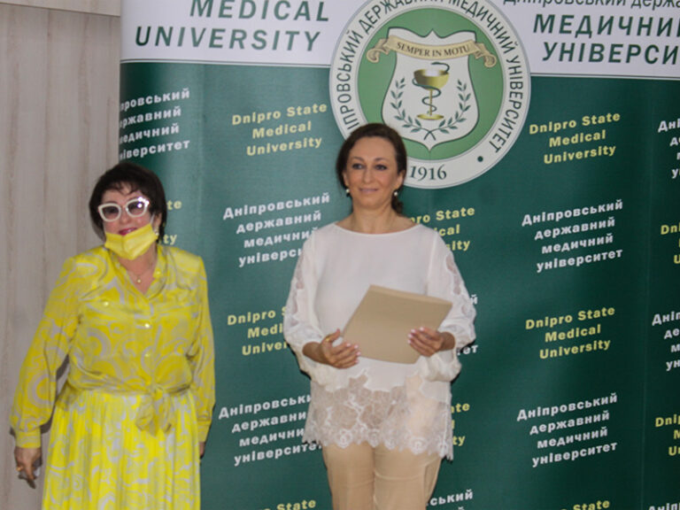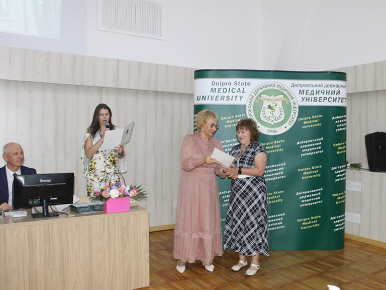 Голова вченої ради професор Т. О. Перцева та голова постійної комісії з охорони здоров’я міської ради міста Дніпра Є. М. Дитятковська вручили численні грамоти і подяки викладачам з нагоди Дня медичного працівника.