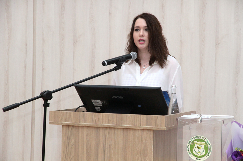 Зі словами вдячності від студентів, які закінчили навчання, звернулася до викладачів голова ради студентів 2023/2024 року навчання Анастасія Рутгайзер.